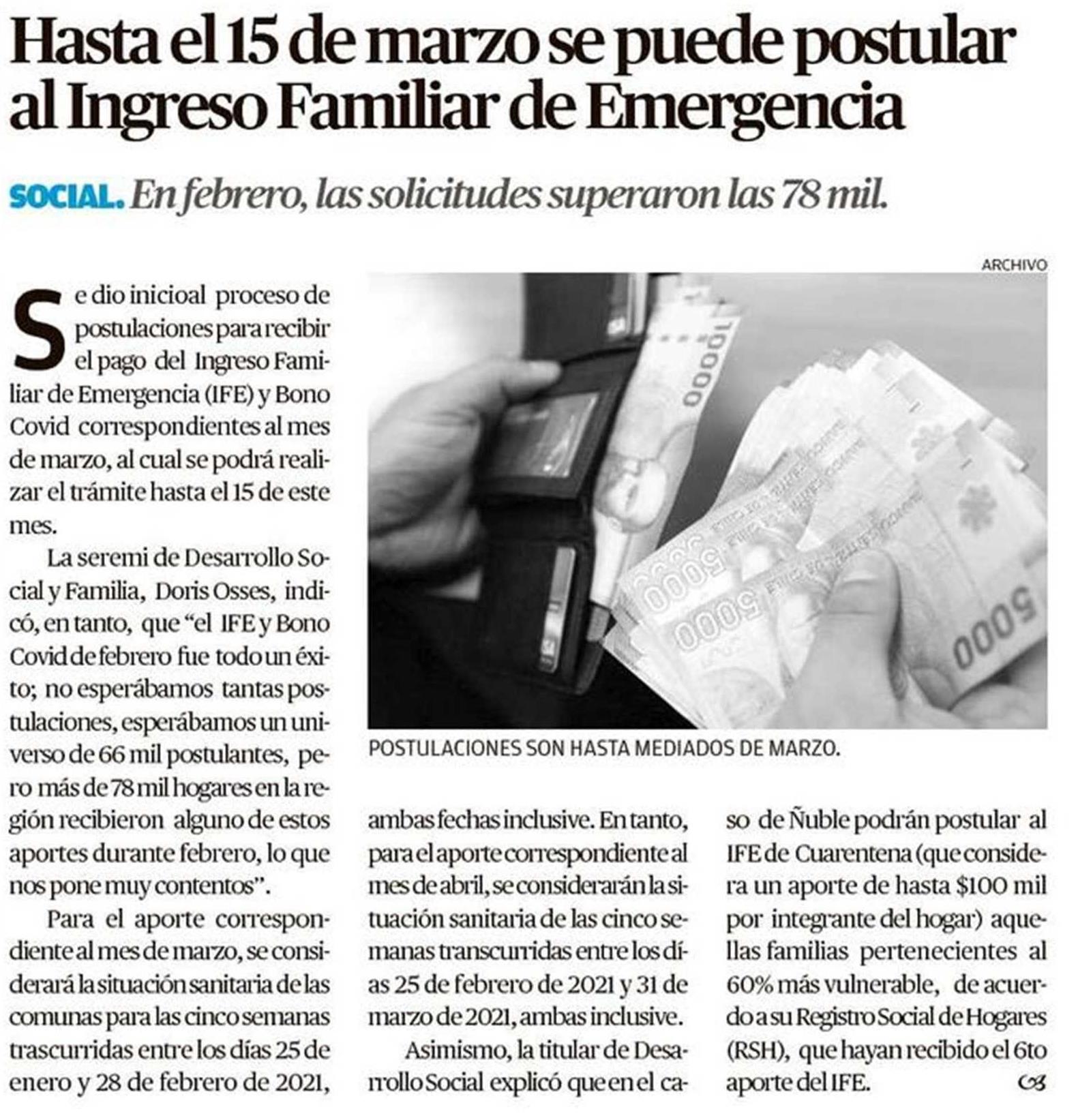 Miércoles 3 de febrero de 2021. Hasta el 18 de febrero se podrá postular de manera online para recibir el pago del ife covid de cuarentena y transición y el bono covid de preparación y apertura inicial, apoyos económicos dispuestos por el gobierno durante la pandemia. El plazo para postular a los denominados ife de cuarentena o ife de transición es hasta el día jueves 18 de febrero. Los hogares que sean de comunas que estuvieron en cuarentena o transición entre el 28 de diciembre de 2020 y el 31 de enero de 2021. ● quienes hayan recibido el sexto aporte del ife.